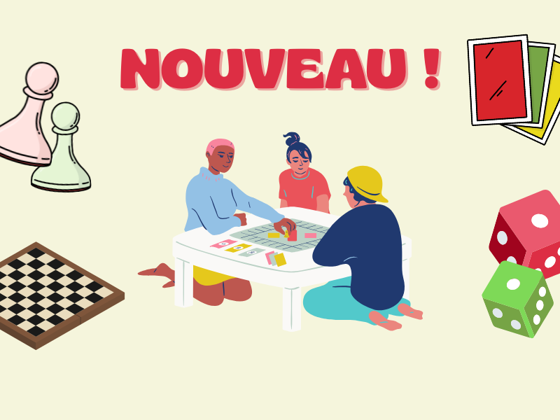 Nous sommes heureux de vous annoncer une toute nouvelle offre : des jeux de société en libre accès, à utiliser sur place.