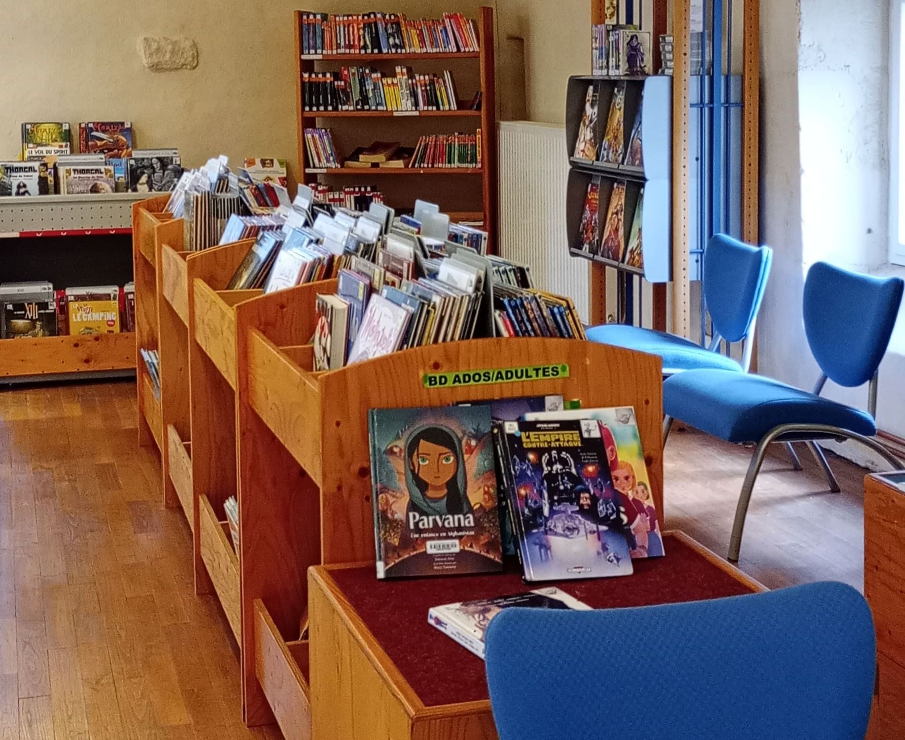 Aménagé fin 2000 dans les annexes du logis « La Pavée », le bâtiment restauré d’une superficie de 150 m2, est articulé sur deux niveaux. Au rez-de-chaussée se trouvent les albums, les romans et documentaires (adultes et jeunesse) , BD adulte ainsi qu’un poste informatique. L’étage, quant à lui, est destiné aux bandes dessinées jeunesse et ados.