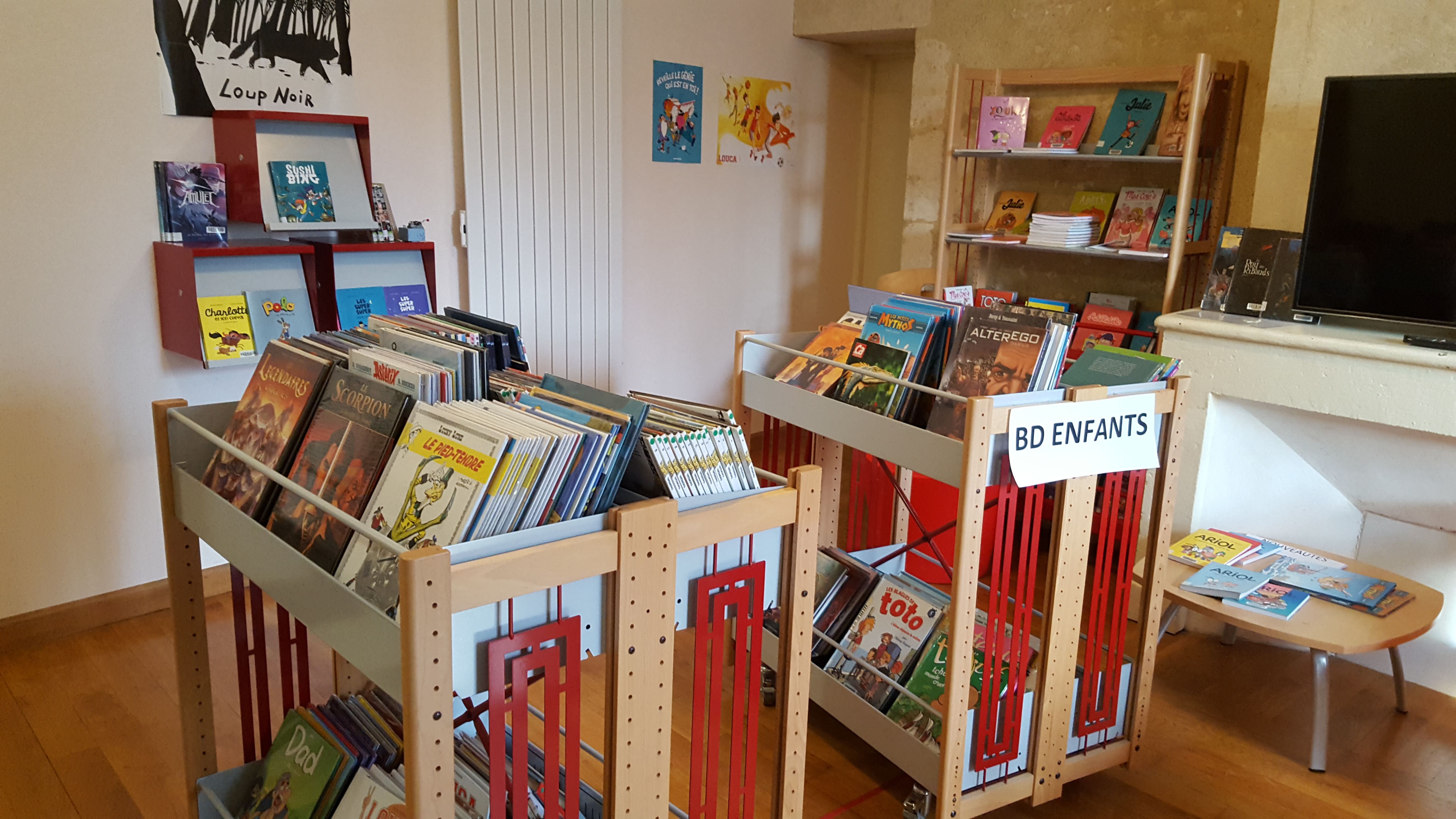 Pour les jeunes un très grand choix de BD, romans , documentaires et pour les plus petits des livres adaptés aux bébés.